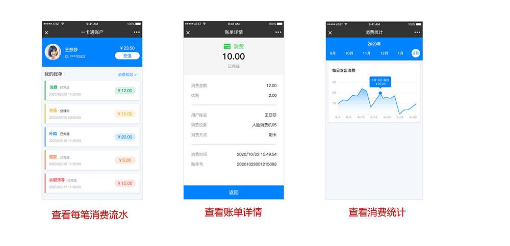 家长可以通过微信公众号查询学生每��笔消费和充���的流水记录,也会推送消费消息到家长的手机上,家长可以掌�?/p>
